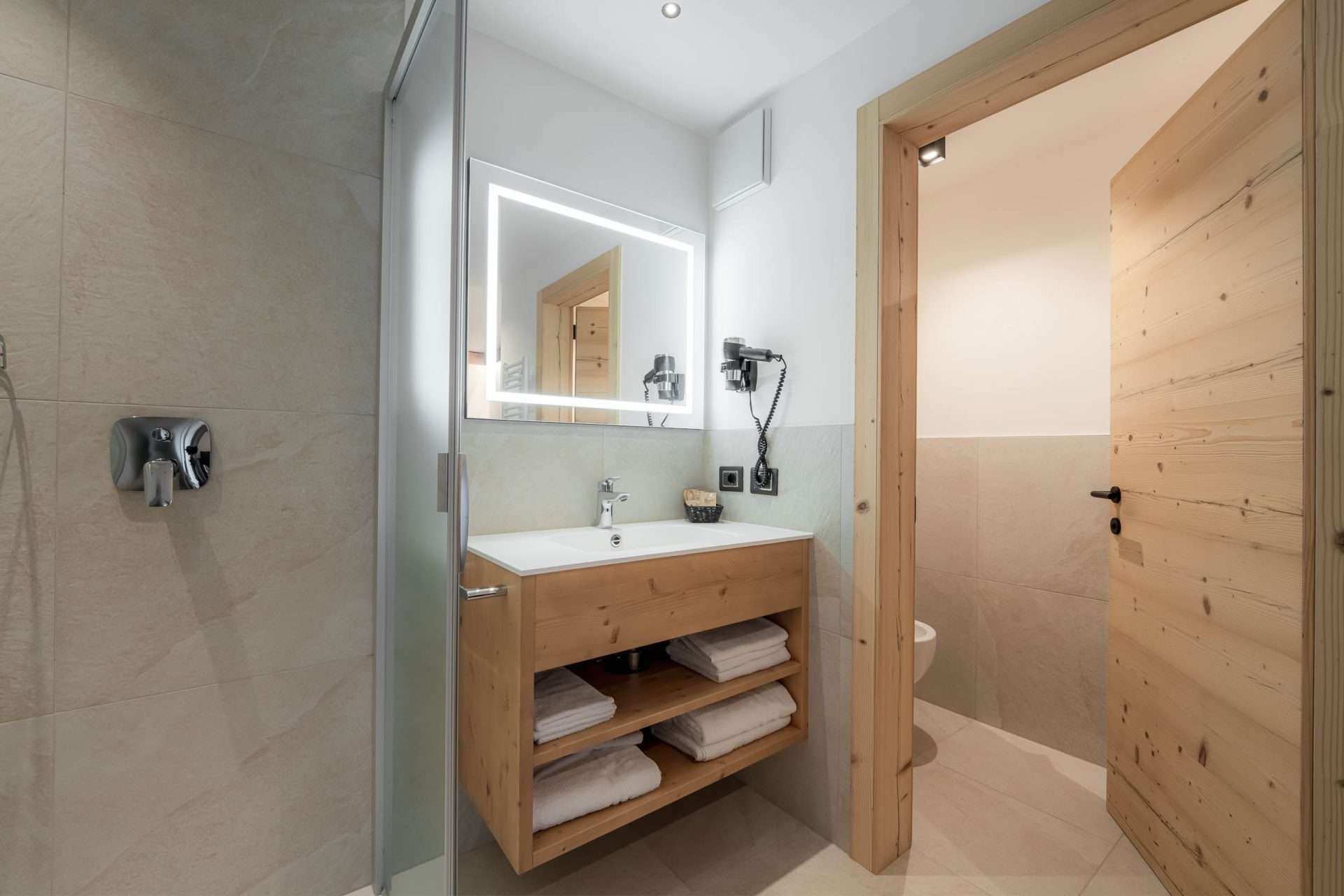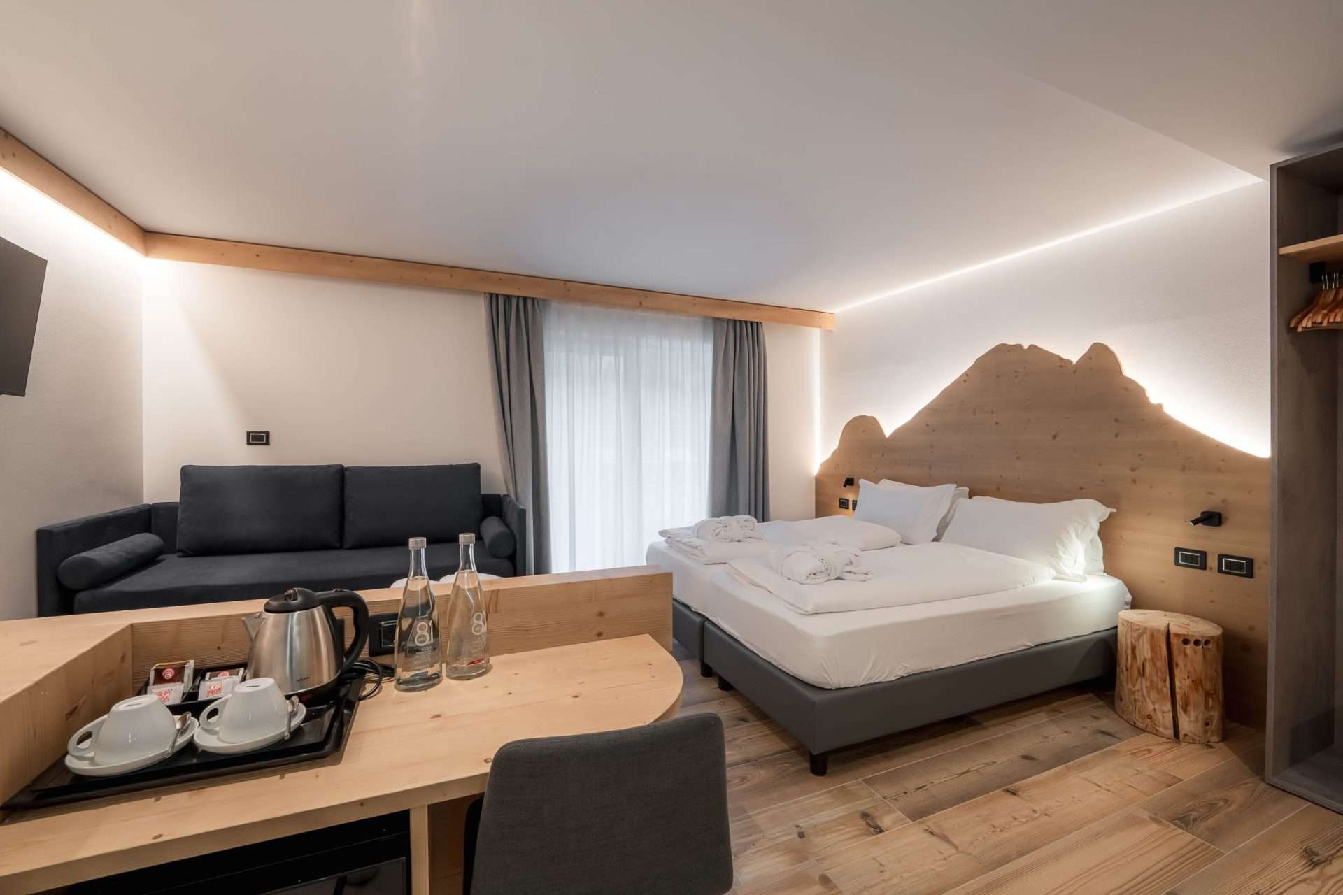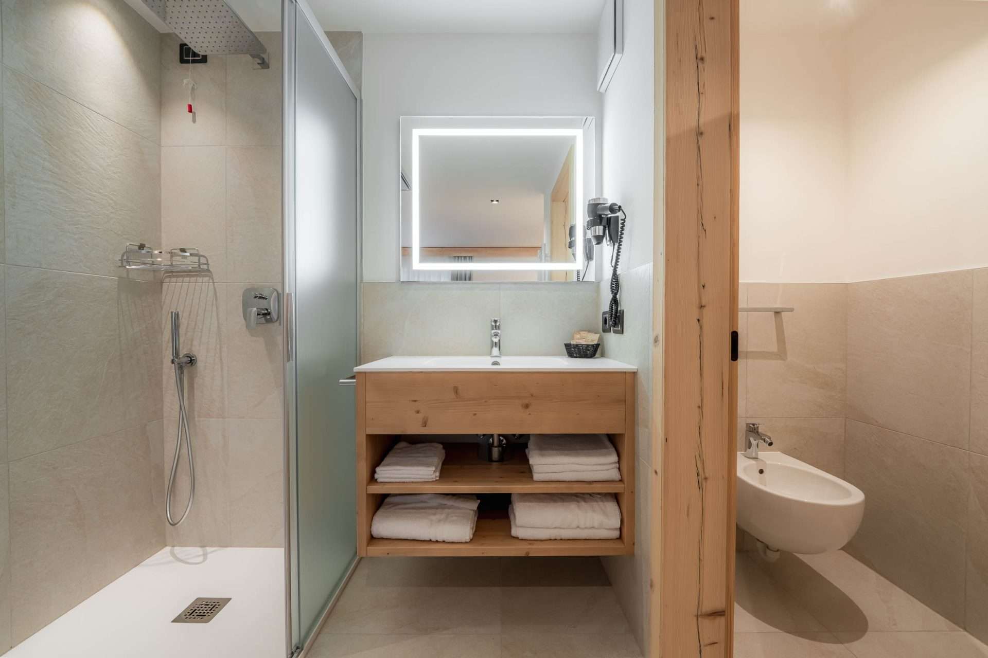 • Materiali e design – Realizzata in legno delle Dolomiti, offre un’atmosfera calda ed accogliente.