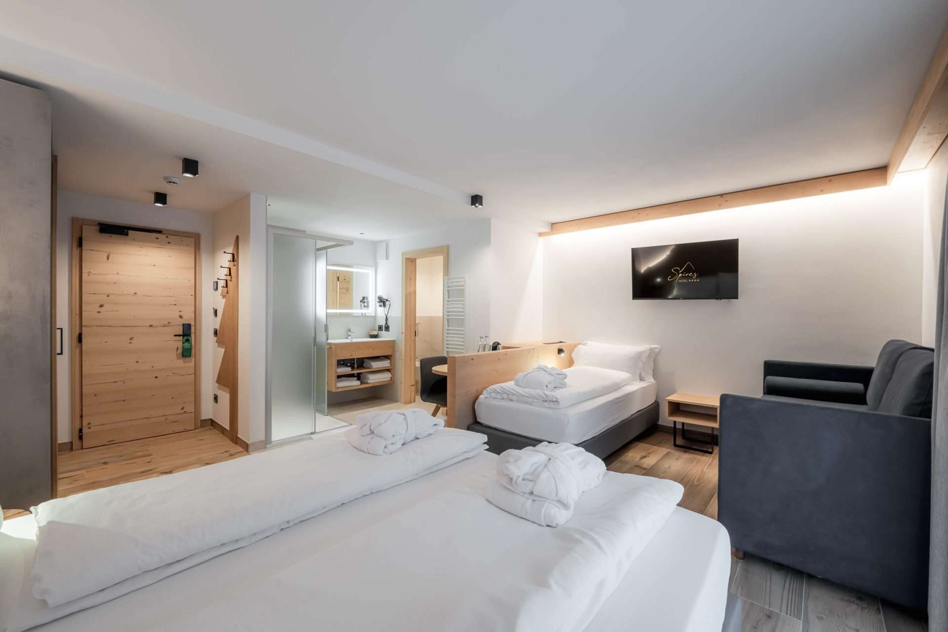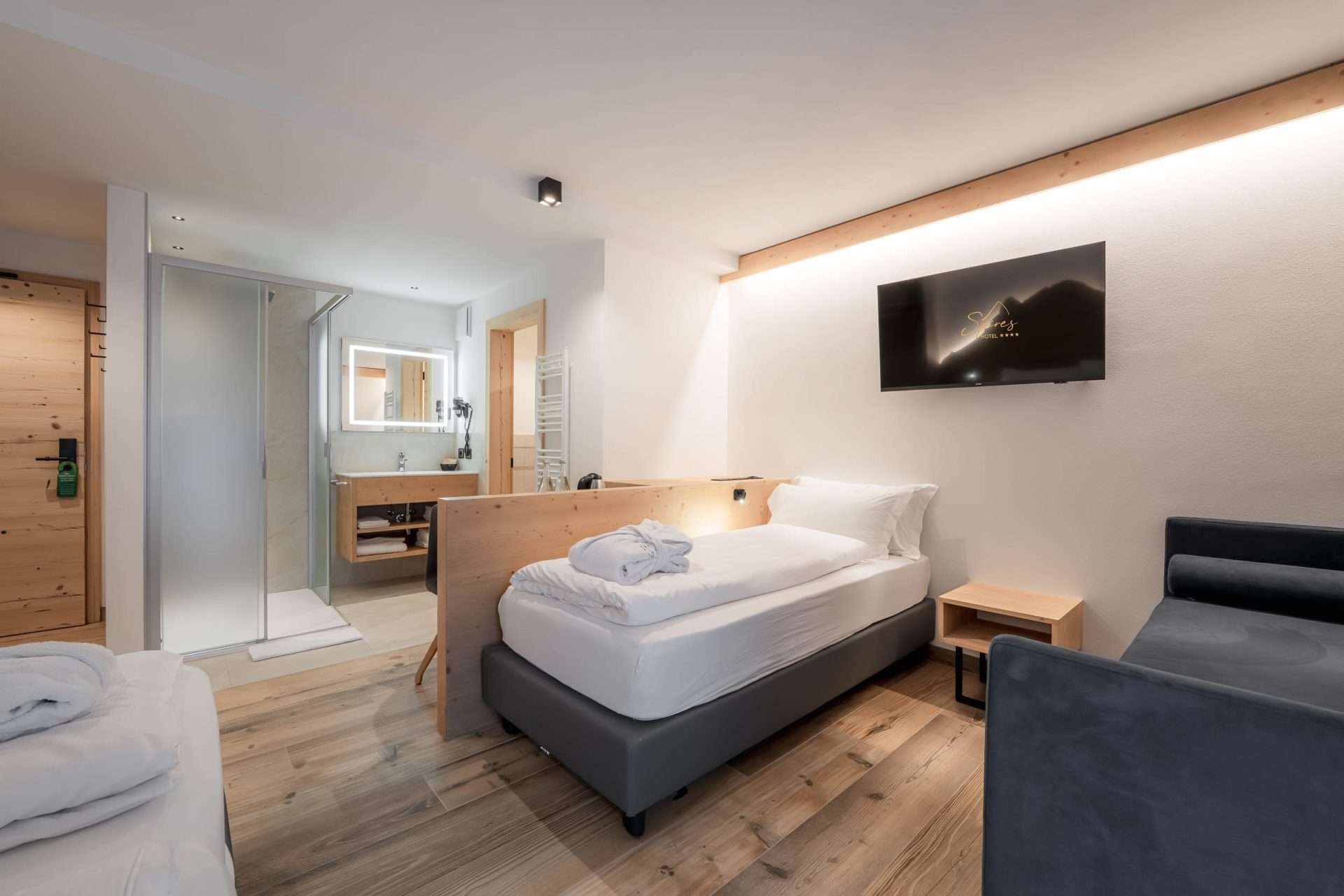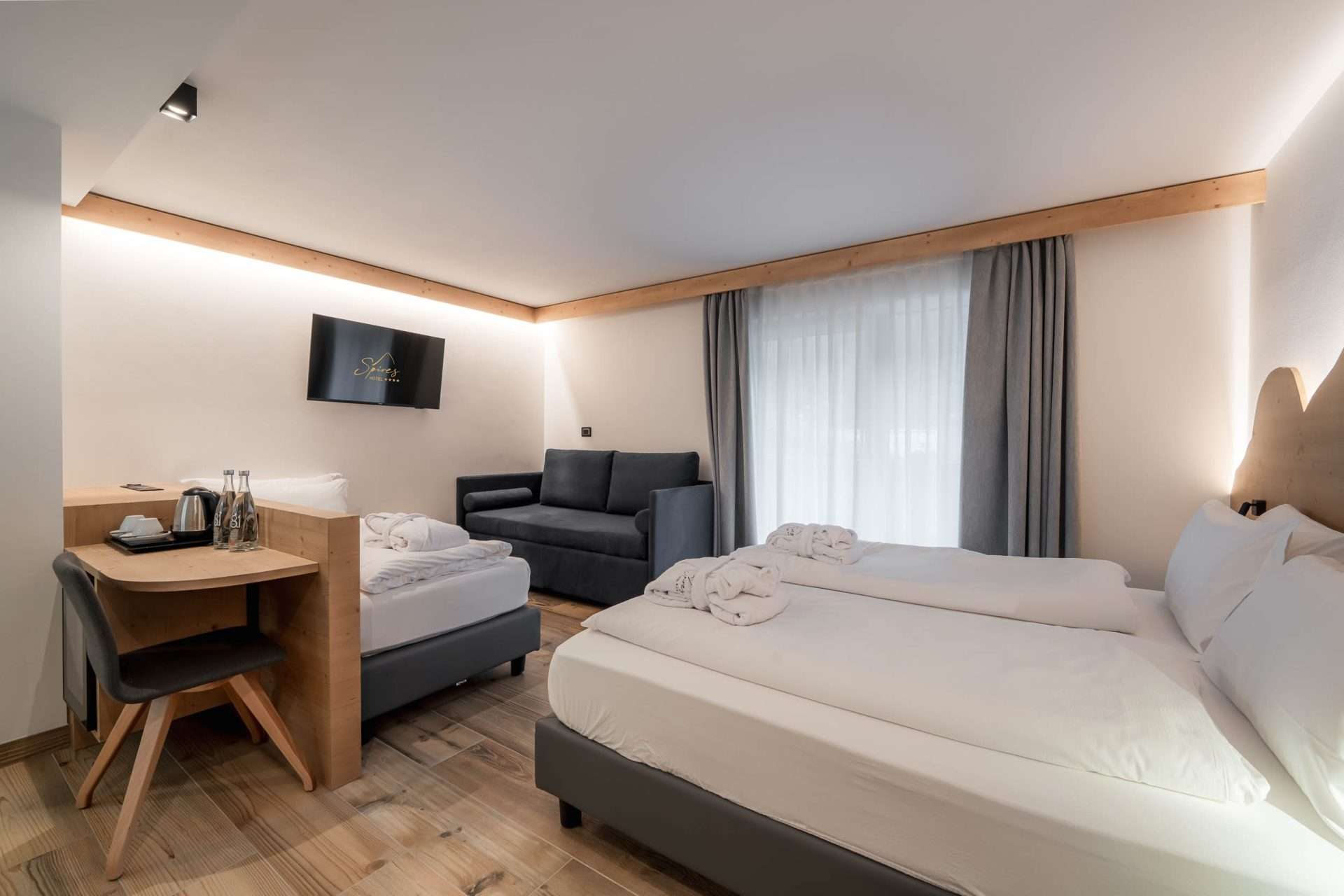 • Materiali e design – Realizzata in legno delle Dolomiti, offre un’atmosfera calda ed accogliente.