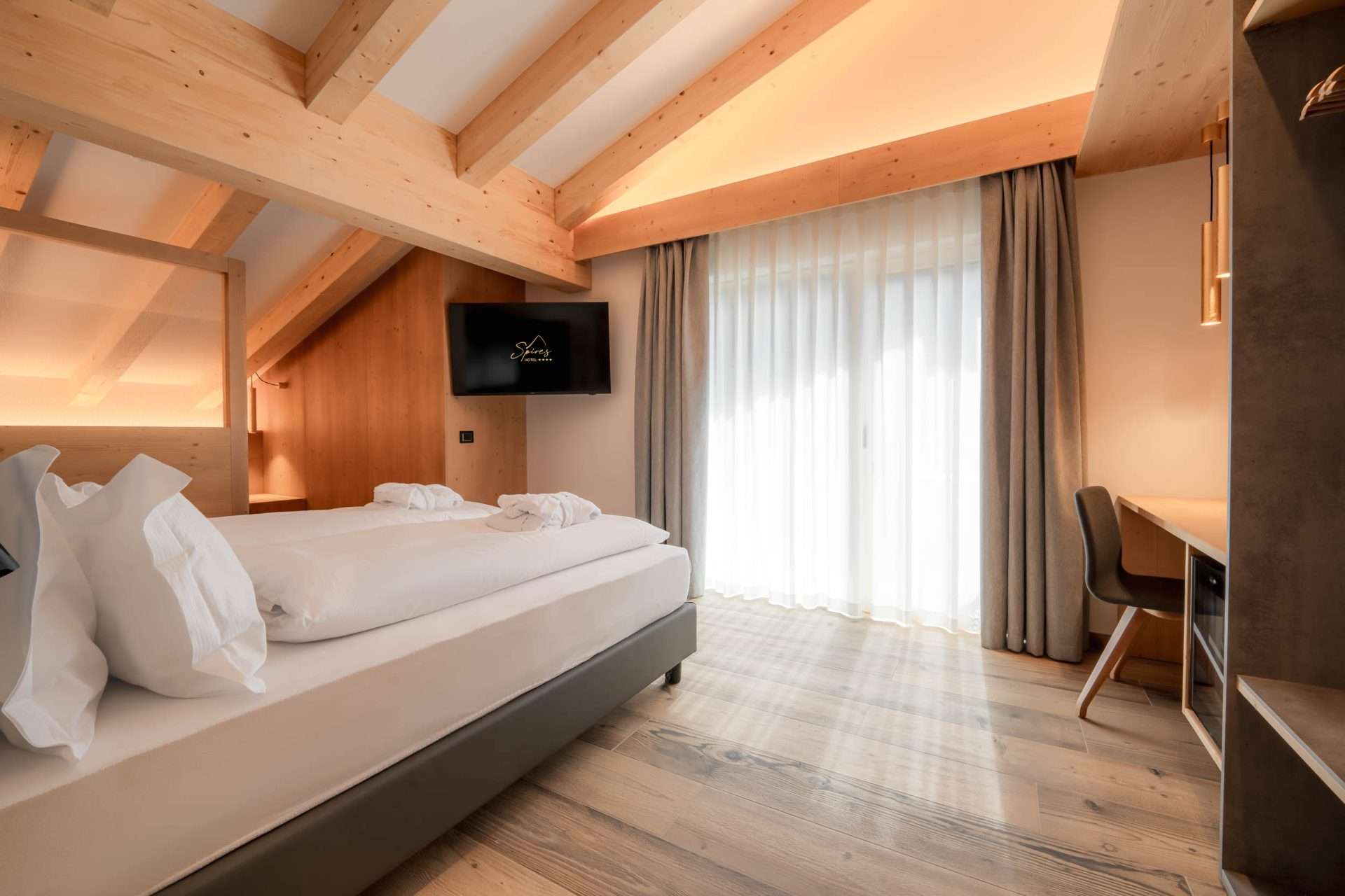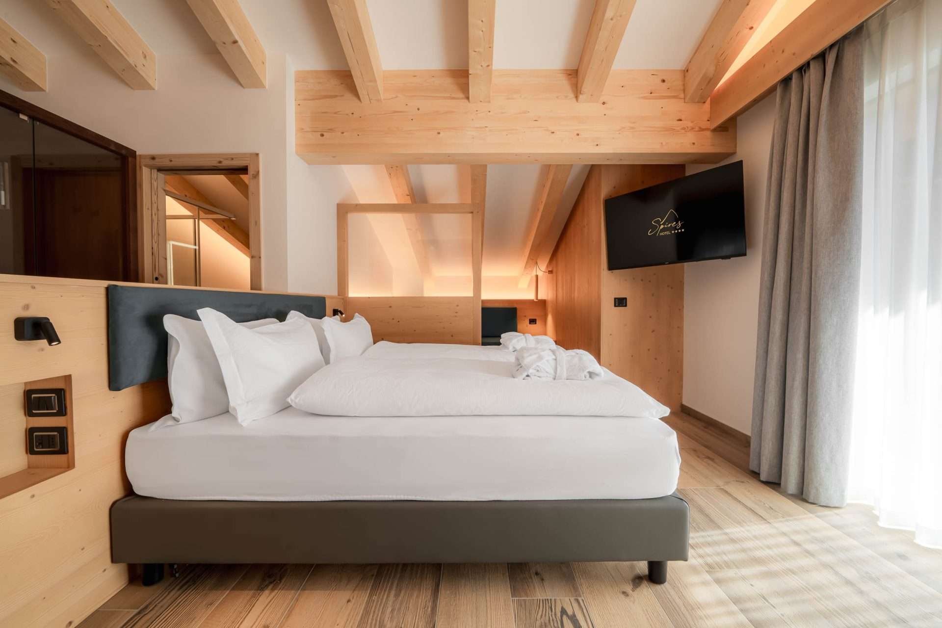 • Vista mozzafiato: svegliarsi con le Dolomiti viste dalla vasca idromassaggio è qualcosa di magicamente unico. Un sogno ad occhi aperti che da noi è davvero realizzabile.